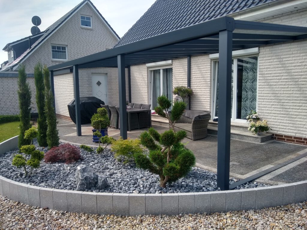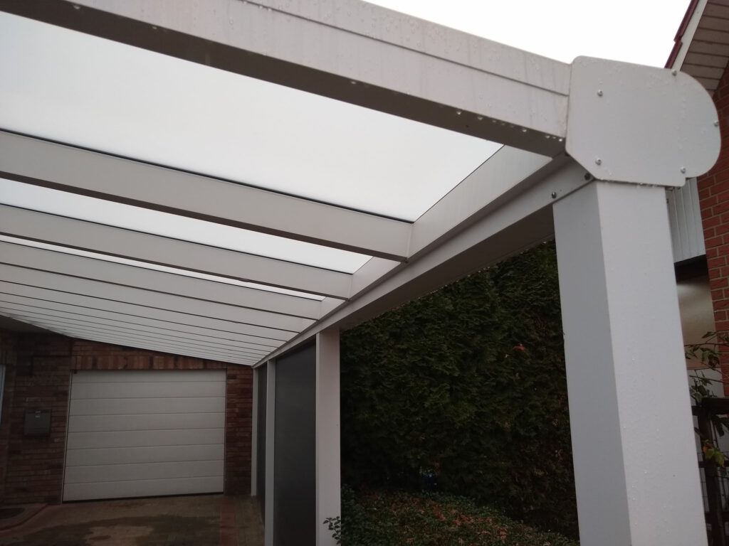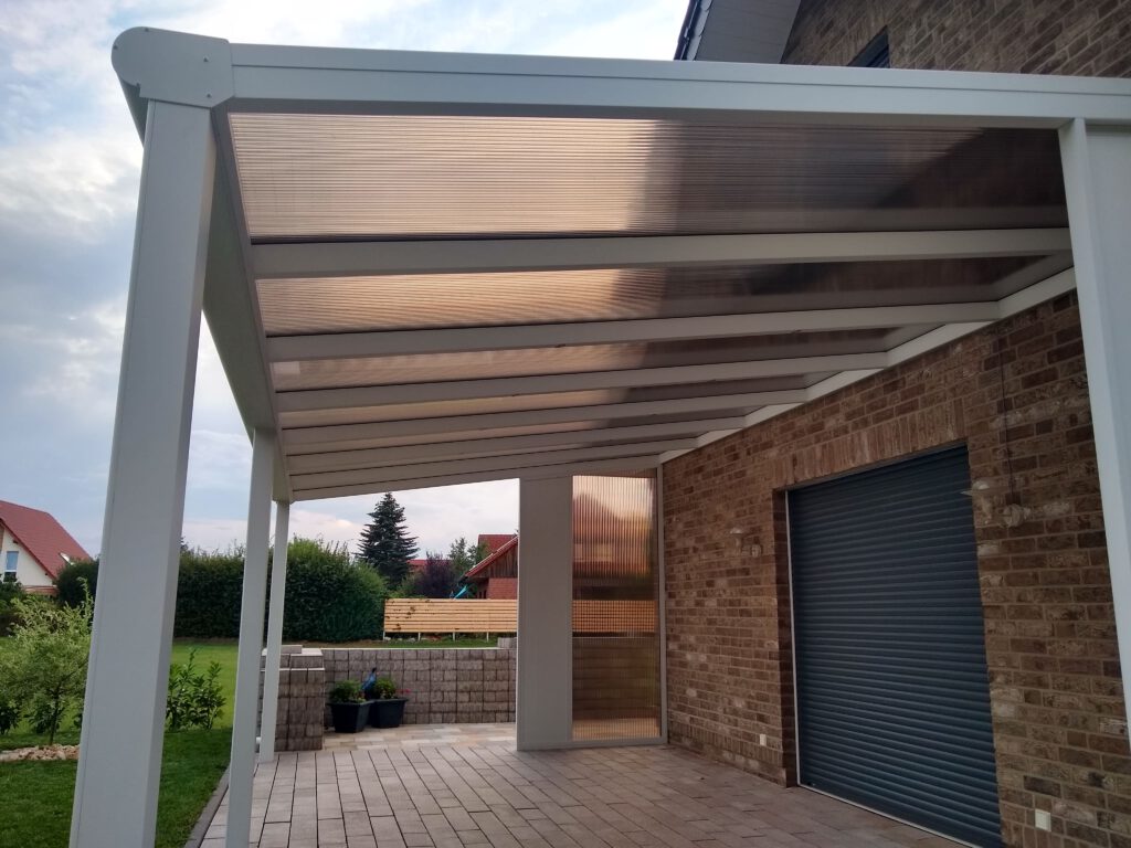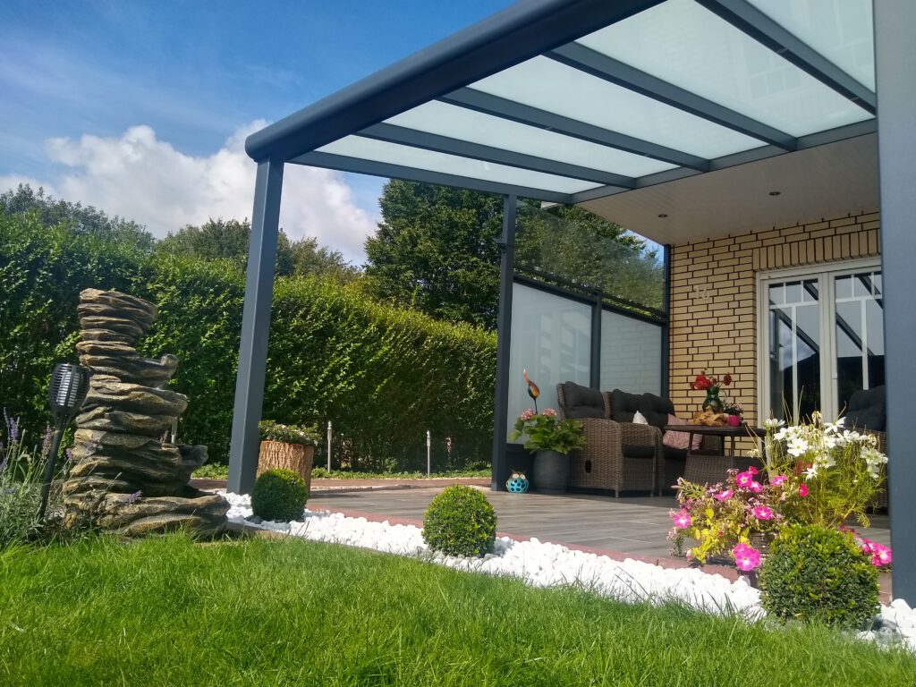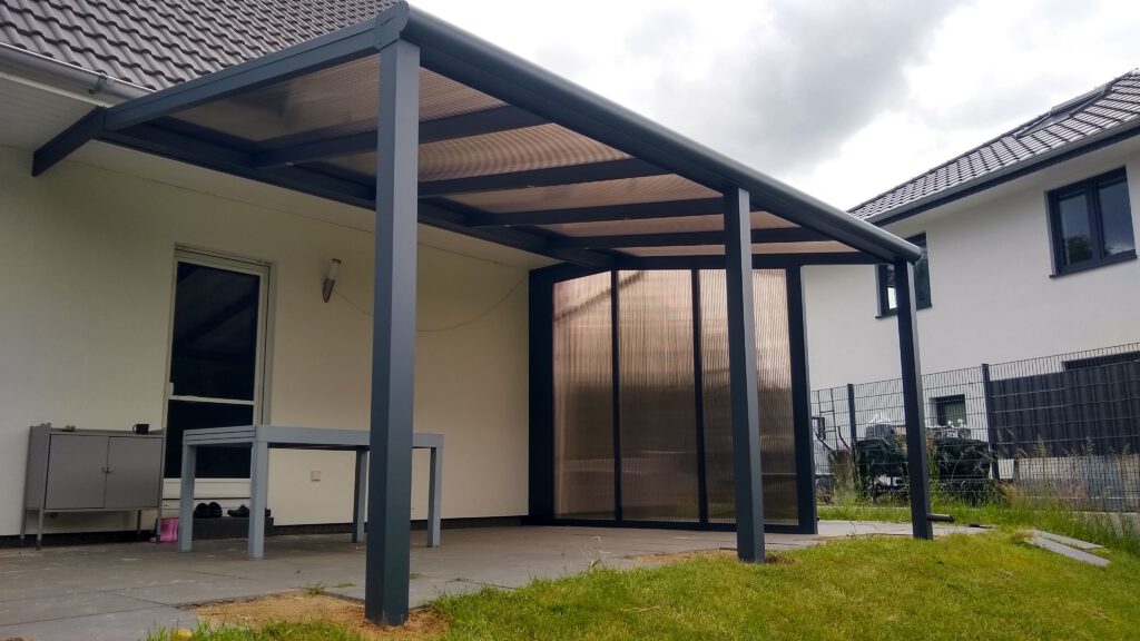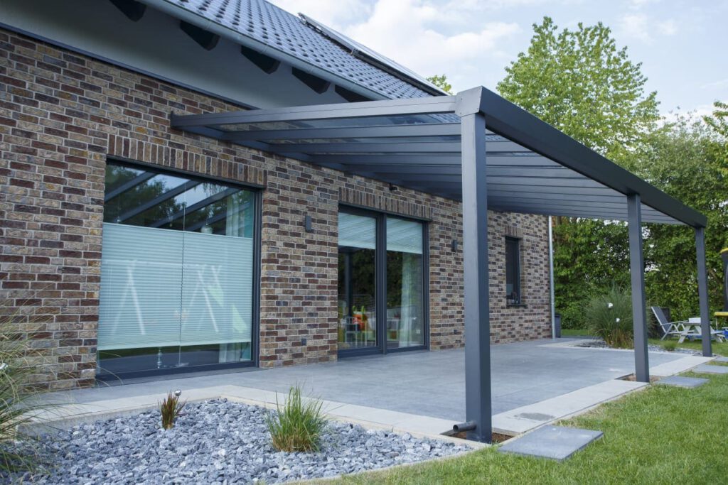 Terrassenüberdachung aus Aluminium mit Glasschiebetüren
